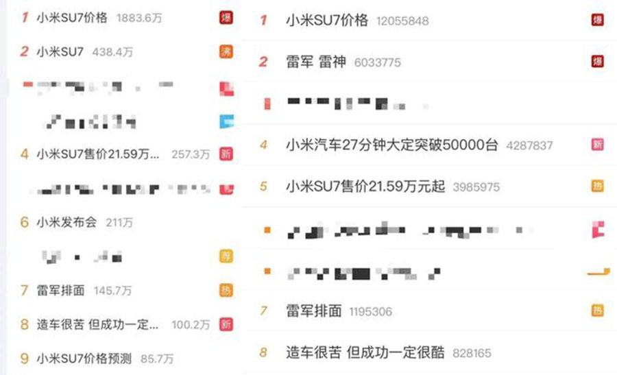 更别提,在XIAOMI SU7即将上市之际,网络上关于其定价的讨论如火如荼,吸引了数百万网友在各大社交平台上热议。随着XIAOMI SU7价格的逐步揭晓,微博热搜榜上相关话题接连不断,成为公众关注的焦点。人们纷纷猜测,小米是否会再次运用其标志性的高性价比策略,如同当年在智能手机市场所做的那样,颠覆消费者对智能电动车的预期。